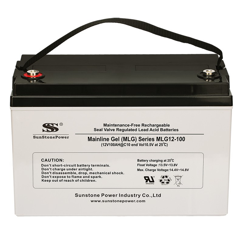 Гелевый тяговый аккумулятор SunStonePower MLG 100Ач 12В серии MLG это тяговый аккумулятор глубокого разряда ( deep cycle ) используемый в качестве источника питания в системах как автономного так и резервного электроснабжения, а так же лодочных моторов и любых других электродвигателей с напряжением 12 Вольт. Данный аккумулятор зарекомендовал себя как надежный аккумулятор для систем резервного электроснабжения и для работы в системах электропитания на солнечных батареях. Компания Технолайн ( e-solarpower.ru ) использует данные аккумуляторы с 2012 года, их безотказная работа стала основной причиной по которой мы рекомендуем именно эти аккумуляторы.В гелевых аккумуляторах в качестве сепаратора между свинцовыми пластинами применяется силикагель, которым заливается пространство между пластинами в процессе производства. Силикагель после застывания представляет собой твердое вещество с огромным количеством пор, в которых удерживается электролит. Благодаря тому, что силикагель полностью занимает пространство между пластинами, в гелевых аккумуляторных батареях практически невозможно осыпание свинцовых пластин и как следствие, закорачивание и выход из строя.