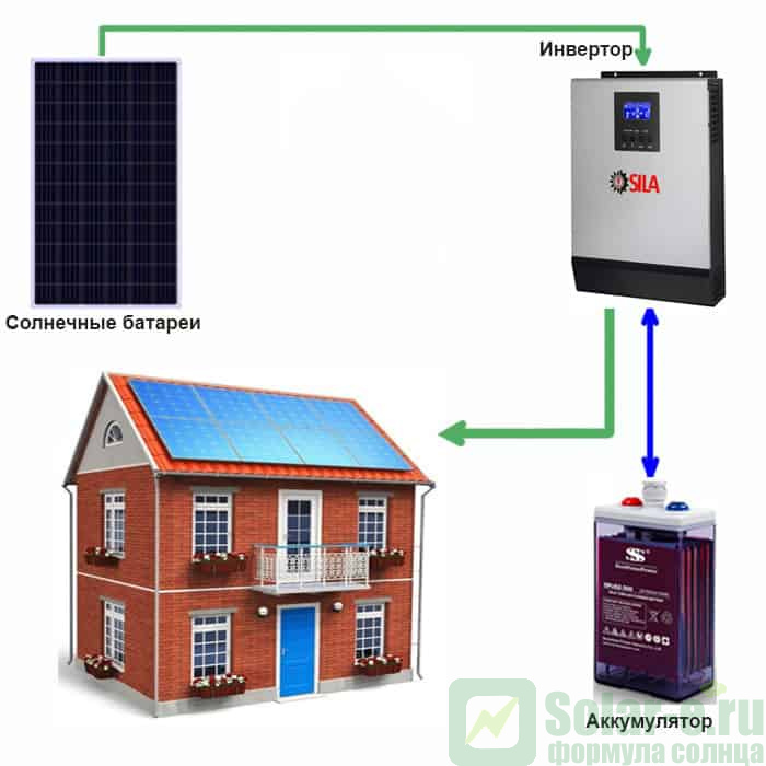 Солнечная электростанция «Дом - 2» подходит для использования как совместно с центральной электросетью ( объект подключен к городской сети ), так и без городской сети ( то есть в условиях полного отсутствия электроэнергии от городской сети ), к примеру небольшие и средние удаленные объекты жилого, хозяйственного или промышленного назначения (дачи, дома, офисы, охотничьи домики, турбазы, бытовки, вахты и т.д.)